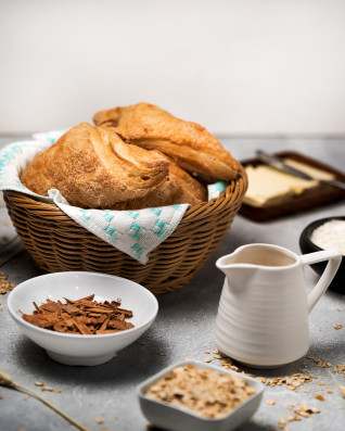 Descubre el irresistible placer de nuestro croissant de jamón y queso, un deleite para los sentidos en cada bocado. Elaborado con una masa ligera y hojaldre, este croissant es el equilibrio perfecto entre la suavidad de su interior y el crujido dorado de su exterior. Relleno con jamón de calidad y queso fundido que se derrite en tu boca, ofrece una combinación clásica y sabrosa ideal para cualquier momento del día. Perfecto para un desayuno elegante, un almuerzo rápido o una merienda reconfortante, este croissant es una experiencia culinaria que no te querrás perder. ¡Ven y disfruta de la fusión perfecta entre tradición y sabor!